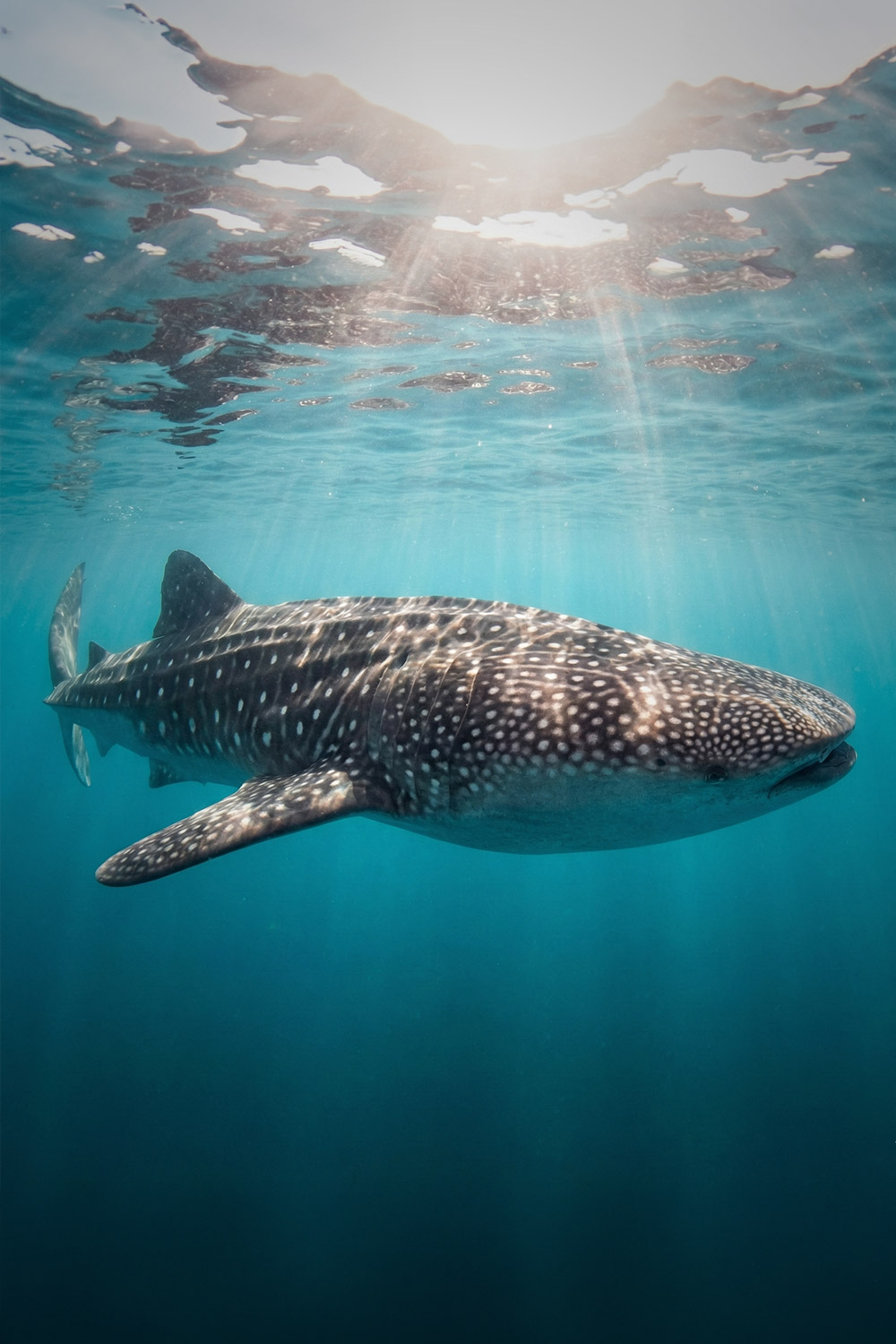 5. Jurassic Park – A dramatic underwater landscape with coral-covered rock towers, manta rays, and reef sharks.