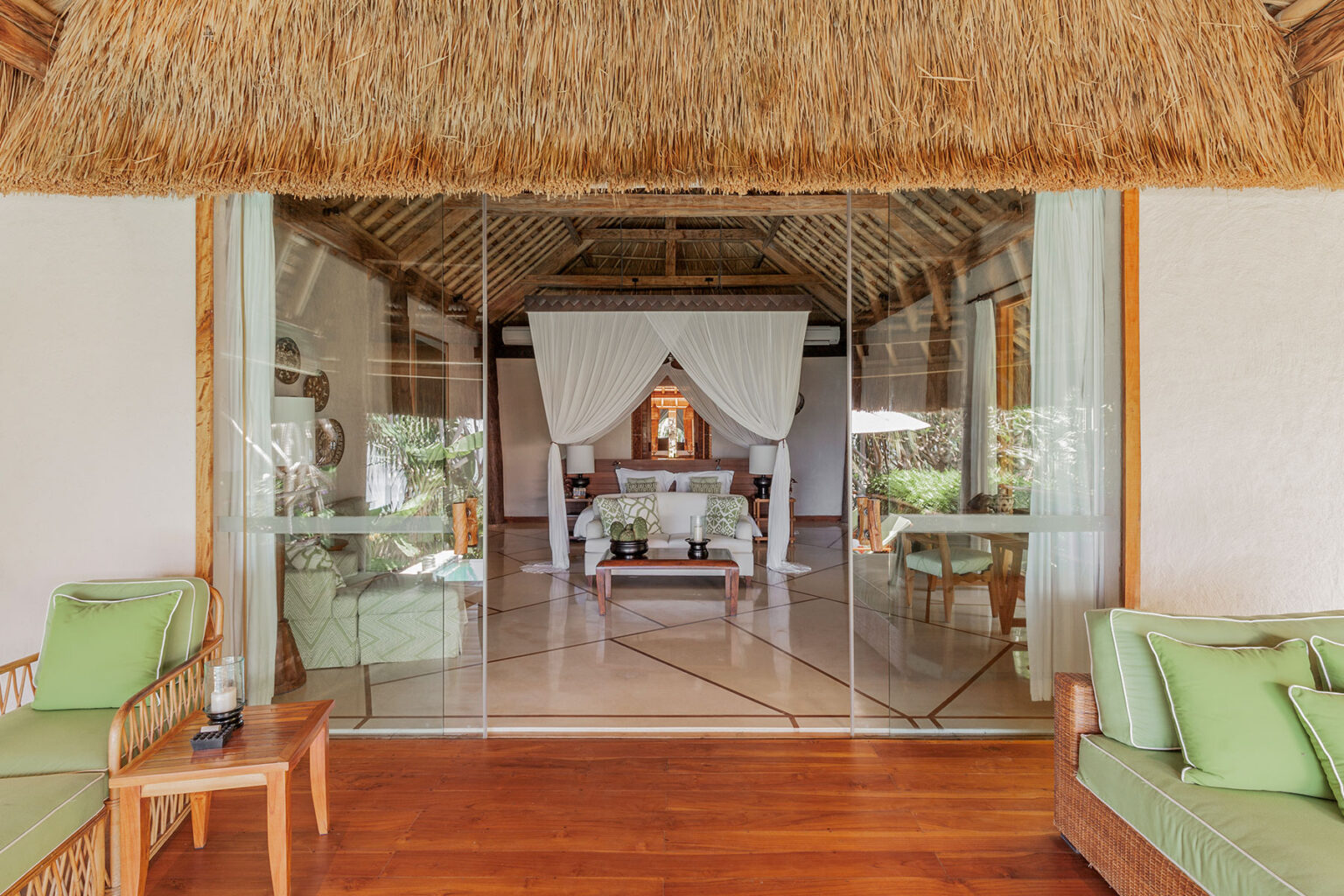 The suite includes a private plunge pool, landscaped grounds, and views of the Indian Ocean. Lantoro’s own private entrance within a shared estate balances seclusion and the villa is designed for couples or solo travellers that want to be able to access the beach via their own garden path.
